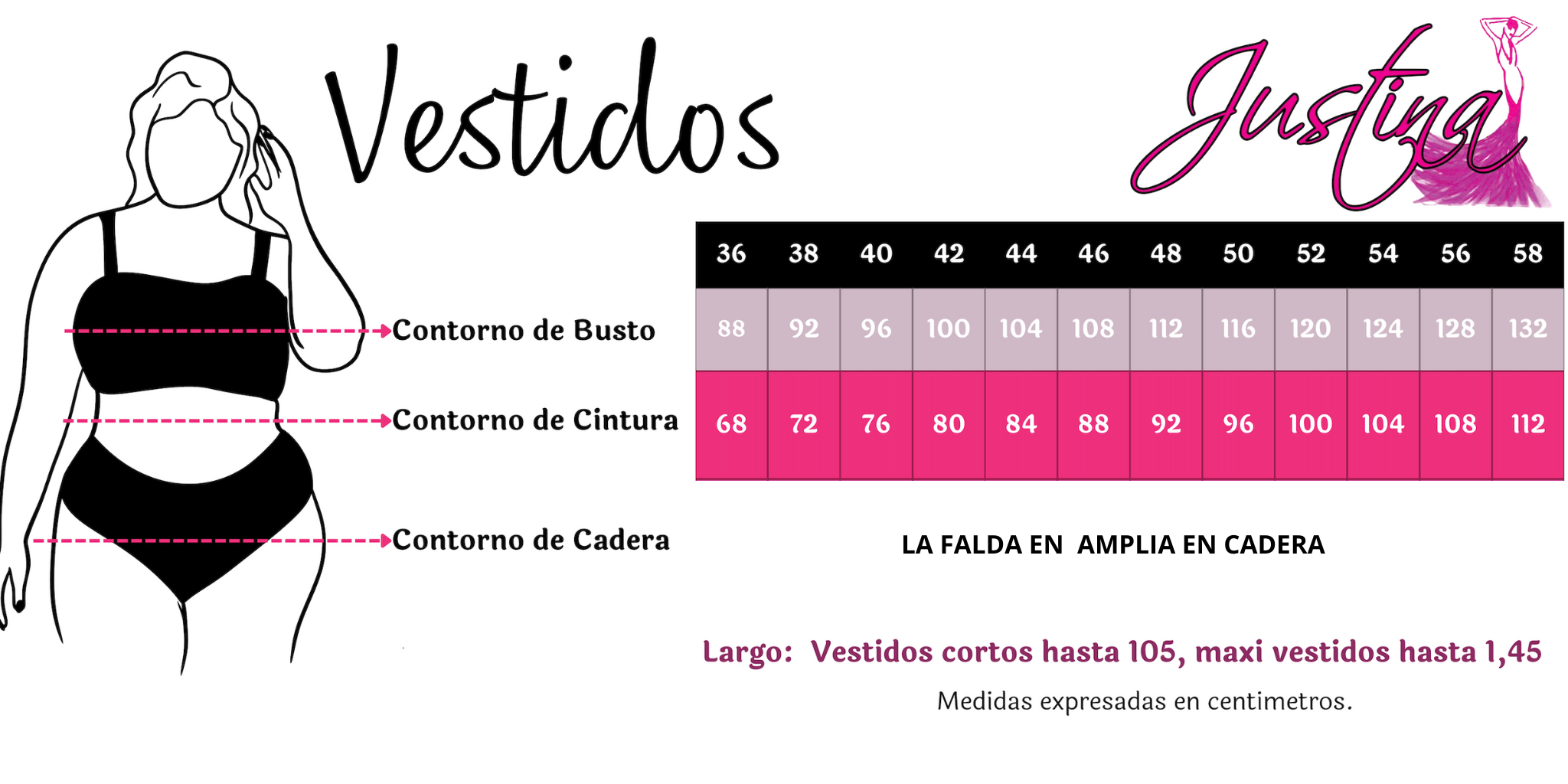 Las medidas son con la prenda sin estirar en busto, cintura alta y cadera, tiene un spandex de hasta 5 cm más .